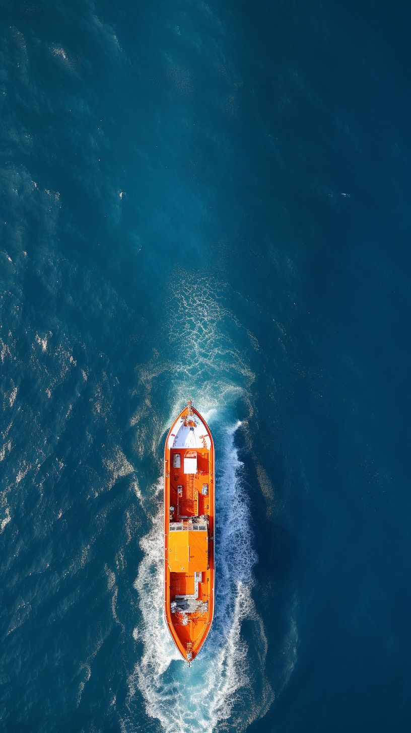 Lifeboats on the Indian Ocean, modern view from above, detailed --ar 9:16 --s 50 --style raw
